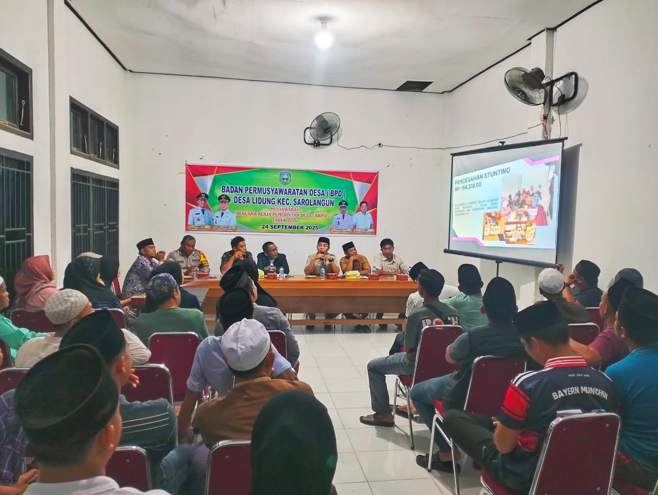 Lidung, 24 September 2025 – Pemerintah Desa Lidung melaksanakan Musyawarah Rencana Pembangunan Desa (RKPDes) untuk tahun anggaran 2026 pada hari Rabu, 24 September 2025, bertempat di Balai Desa Lidung. Acara ini dihadiri oleh Camat Sarolangun, Pendamping Desa, Pendamping Kecamatan, Bhabinkhatibnas, Kepala Desa, BPD, perangkat desa, perwakilan RT/RW, tokoh masyarakat, tokoh agama, tokoh pemuda, PKK,,BUMDES dan berbagai unsur masyarakat lainnya.